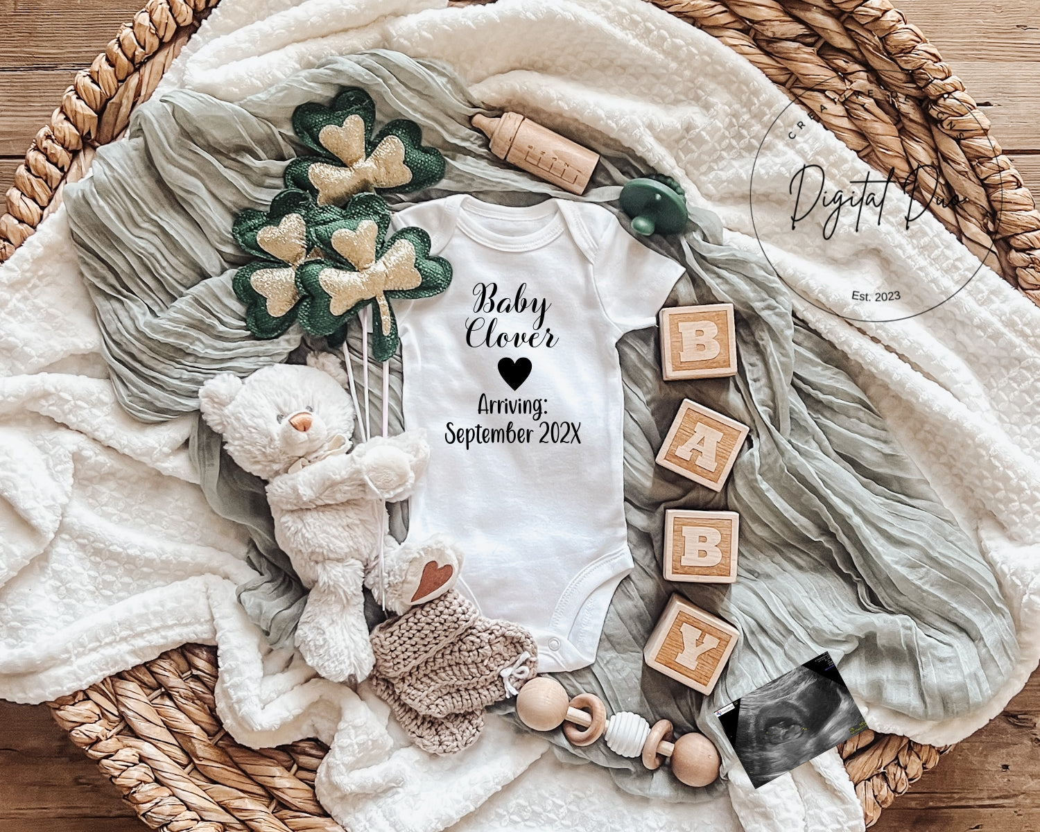Editable Digital St Patricks Day Pregnancy Announcement Baby Reveal for Social Media
